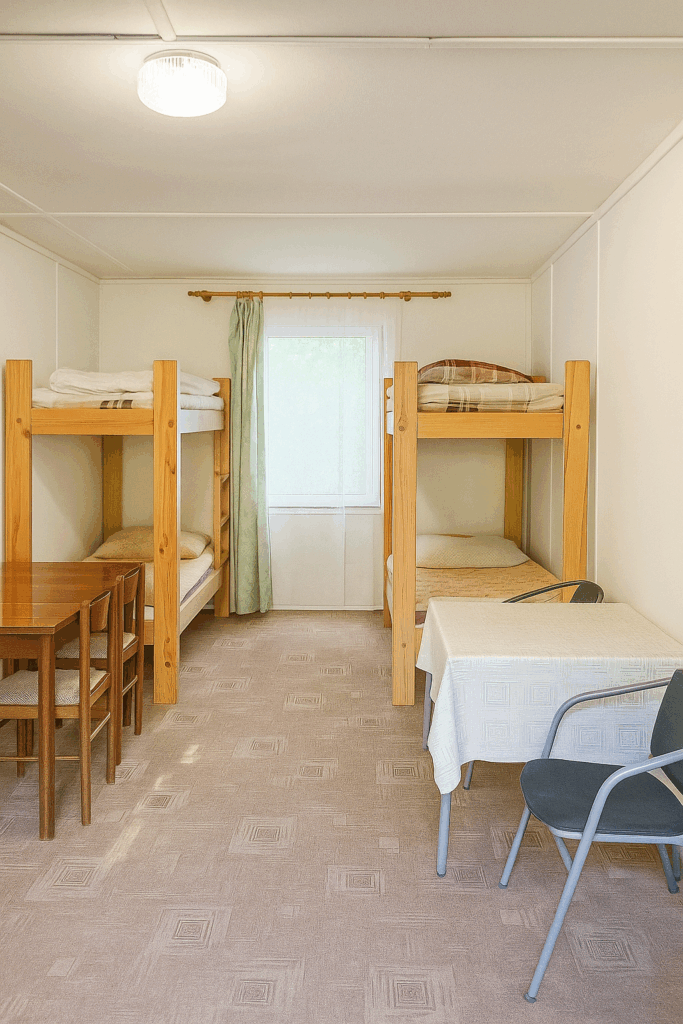 V našem autokempu máte možnost ubytování v čtyřlůžkových chatkách nebo můžete využít vlastní karavany a stany.